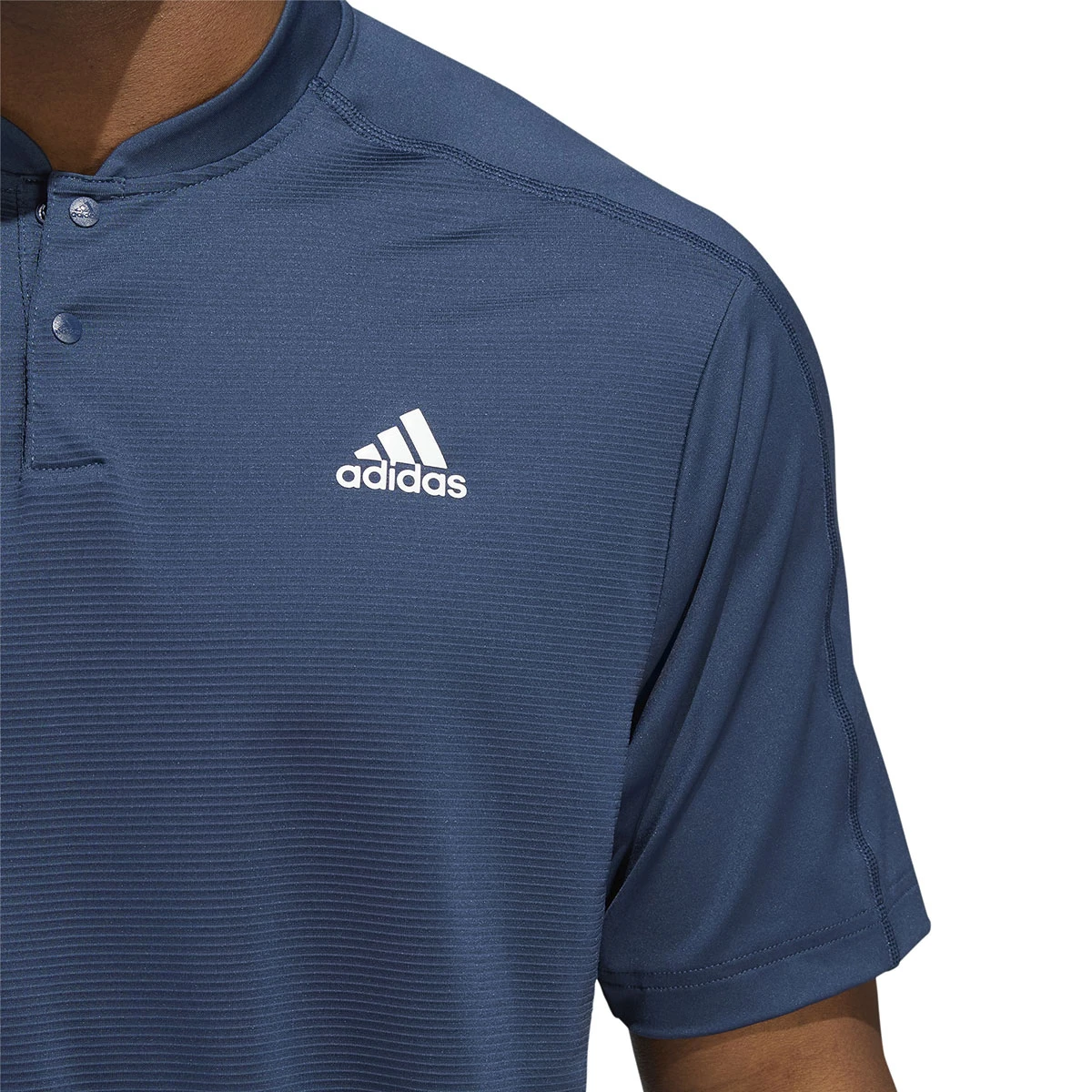 This high-tech polo shirt is made from a single jersey fabric with a high stretch to enable you to move freely in comfort as you play golf. The shirt has a modern snap placket with a low profile collar, and has an ottoman stripe texture on the front body and upper back panel. . This shirt is made with Primeblue which is a high-performance recycled material made in part with Parley Ocean Plastic. Helping to remove plastic waste from the oceans, making a difference to our planet.