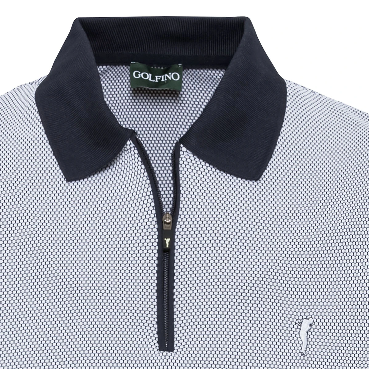 This functional shirt feels comfortably lightweight and breathable when playing golf. Equipped with a moisture management function that transports access perspiration away from the skin to the surface of the fabric, where it quickly evaporates. This enables dry comfort even in high temperatures. The material also provides optimum freedom of movement and a long-lasting good fit. Highlighted with a popular bubble jacquard fabric with a discreet GOLFINO logo embroidered on the chest, a ribbed polo collar and a short zip fastener.