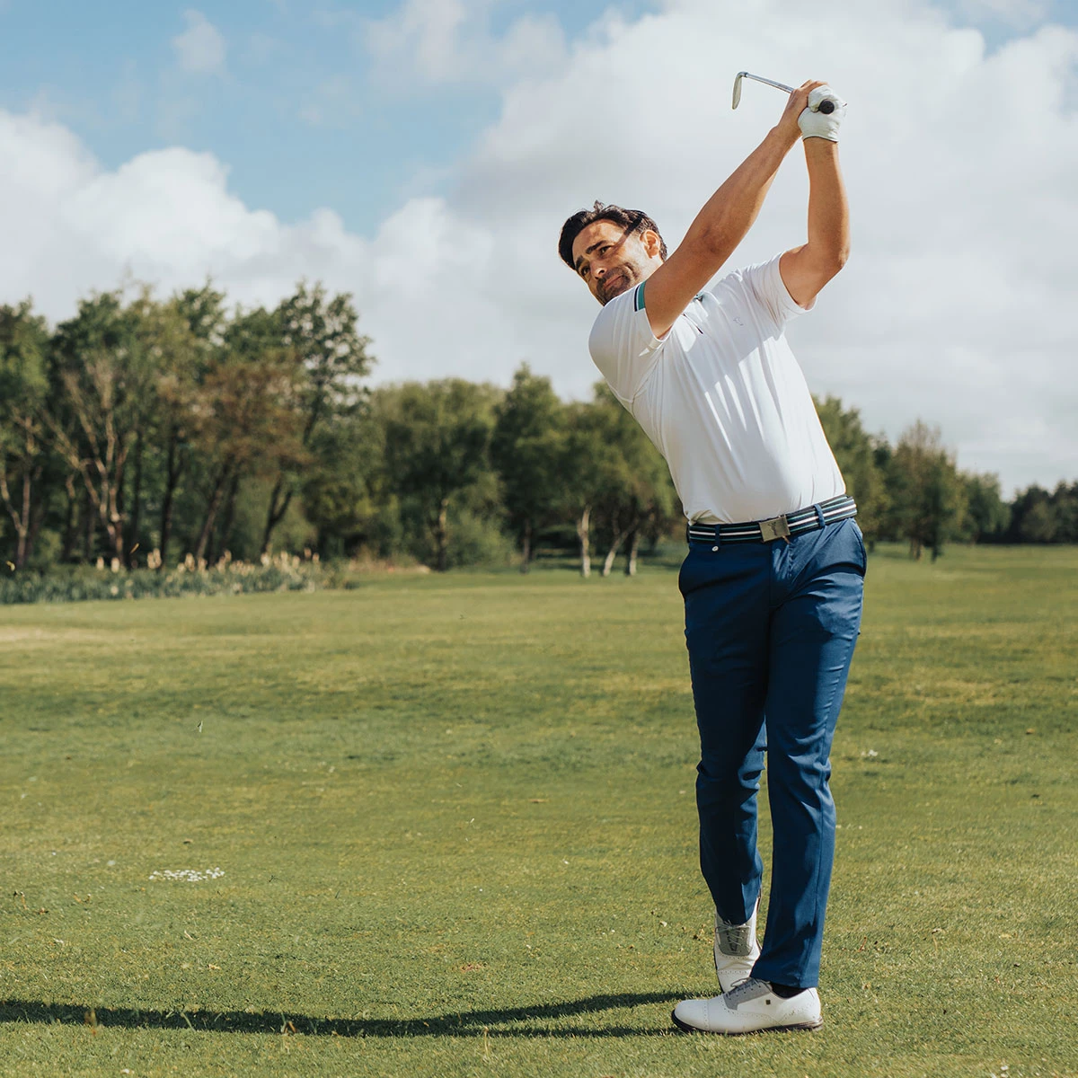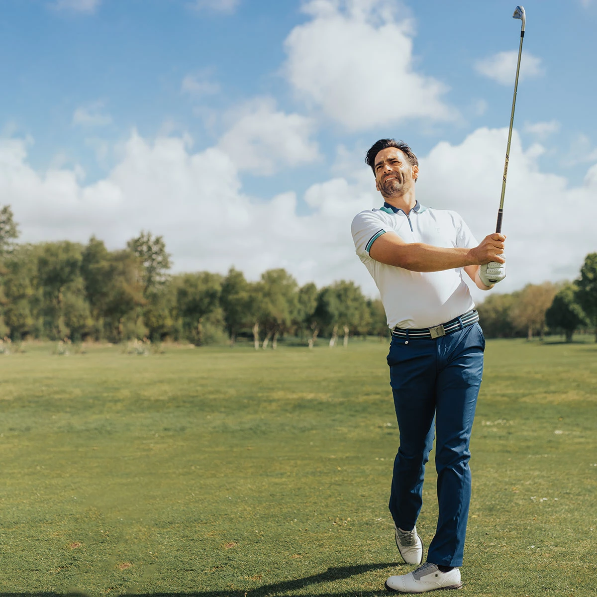 This modern men’s functional golf polo is created in a high-quality cotton blend with high wearing and soft comfort. Sporty golf fashion in a regular fit with stretch element and effective UV protection to keep you free and fresh on the golf course.. Feature stripes on the contrast collar and the sides of the short sleeves underline the fashionable look.