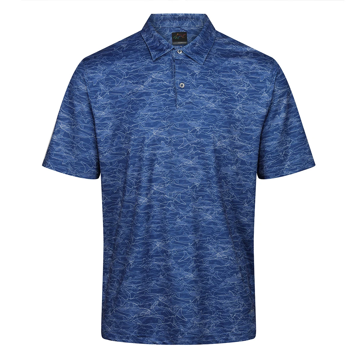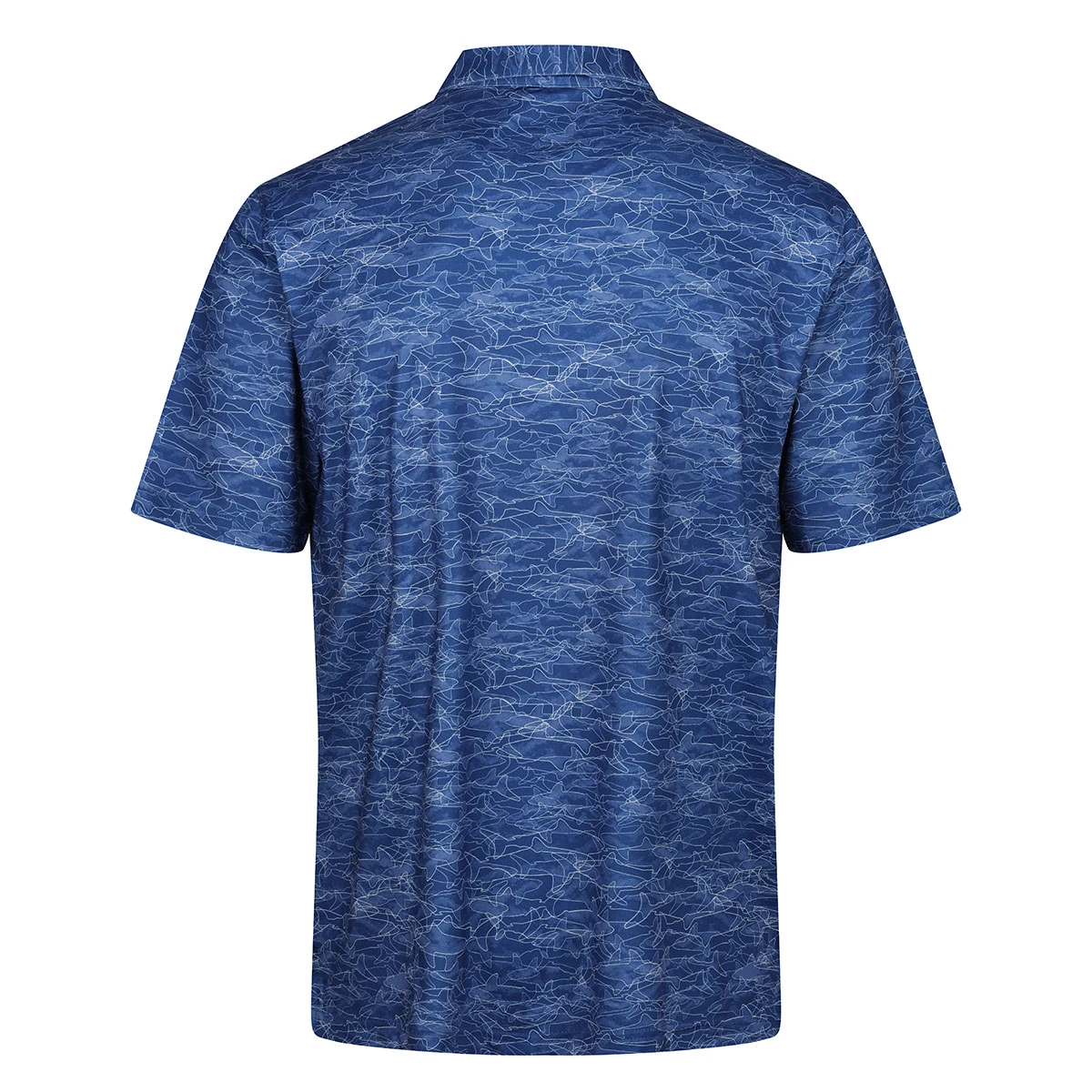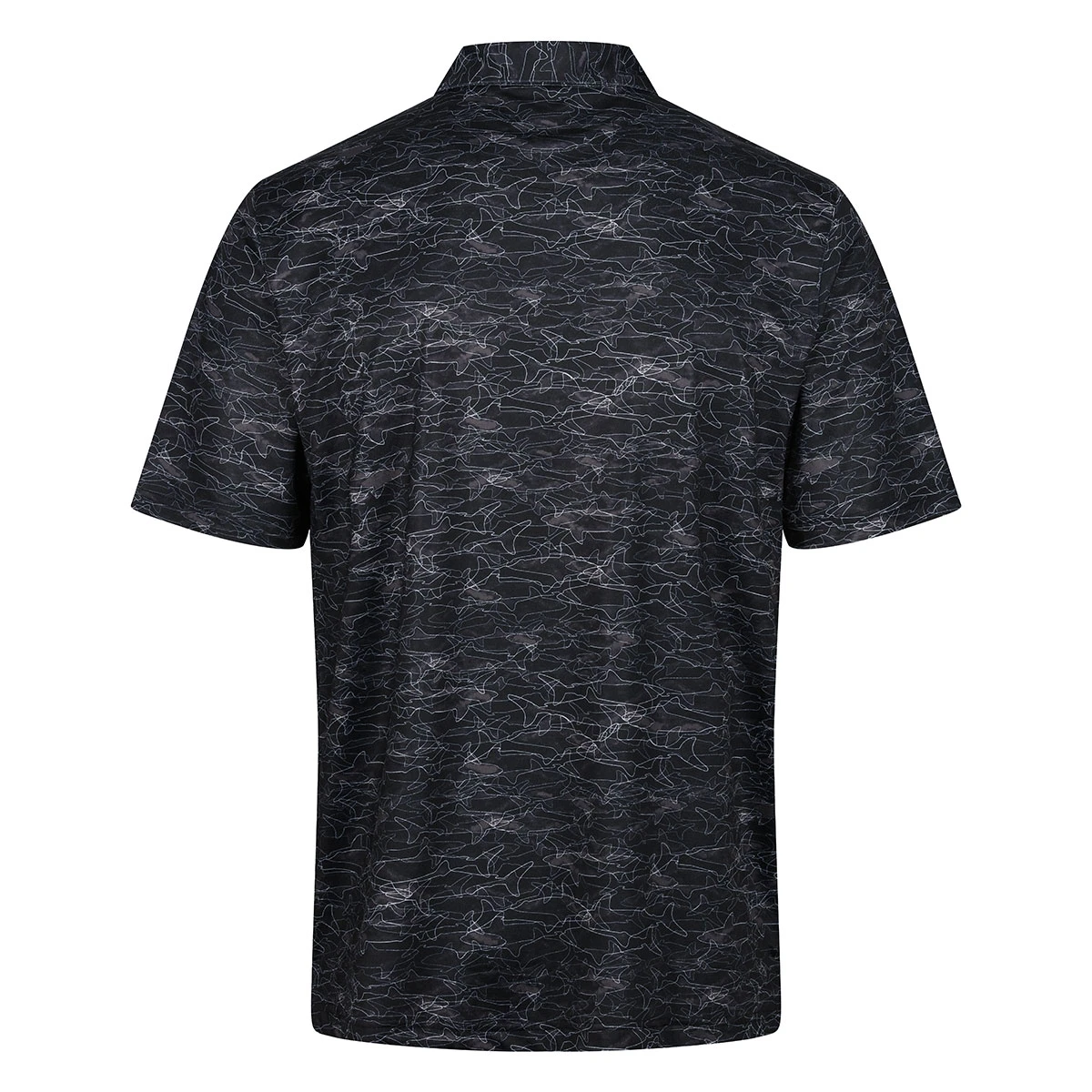 Constructed using a mesh jersey ML75 recycled fabric, for sustainability and performance. Plus is equipped with Play Dry moisture management and an extreme 50+ protection rating to keep your skin safe out in the sun. The shirt is highlighted with a tonal shark pattern print, buttoned placket, and a tailored collar, perfect for playing golf.