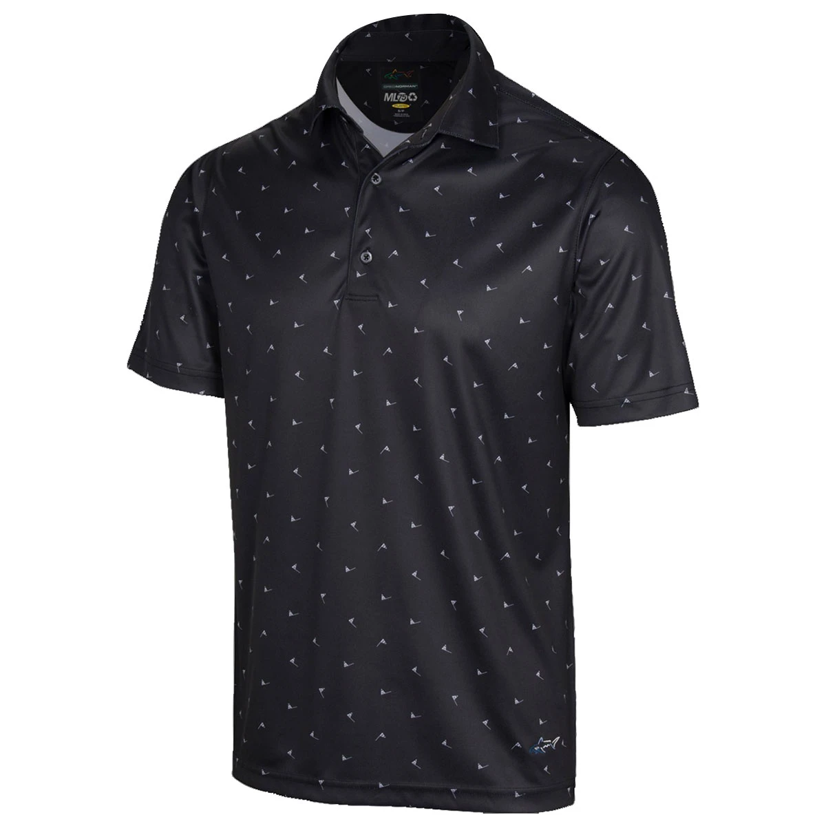 This performance polo is constructed with superfine recycled microfiber yarn, with an engineered pin flag print to give you added style as well as performance. ML75 recycled fabric that offers functionality and 50+ sun-blocking to keep your skin safe from harmful rays as you perform. The polo shirt offers freedom of movement and is equipped with the Play Dry advanced moisture system to keep you dry and comfortable. Finer details include a tailored collar, plus is highlighted with a Greg Norman shark logo on the back yoke for additional attention.
