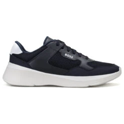 These sporty BOSS running-inspired sneakers are designed with bonded leather and mesh upper material for breathable comfort. Complete with a lightweight EVA midsole to provide comfort and extra cushioning. Plus a modern rubber outsole for traction, with rubberised BOSS details to assure a sporty look.