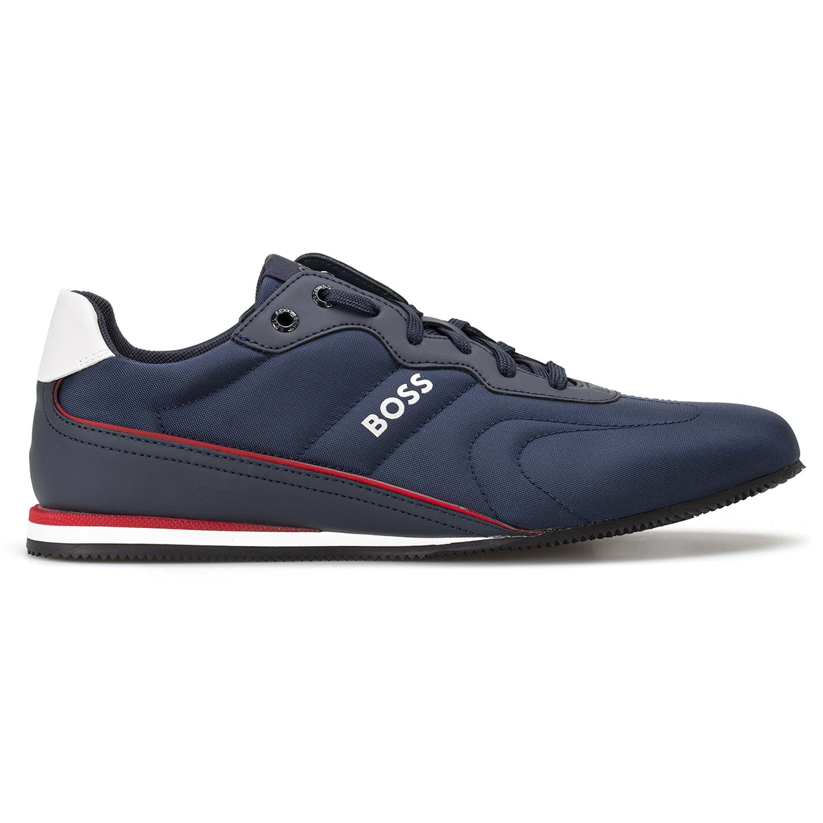 This premium low-profile trainer has a breathable nylon upper for everyday performance. Equipped with a lightweight EVA midsole and an even lighter memory foam insole for cushioning and comfort on the very first step. The shoes also have a durable rubber outsole for maximum grip, and feature a BOSS logo in contrasting colour on the side.