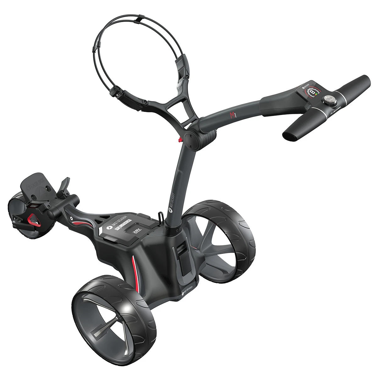 The M1 trolley has one of the world’s most simple compact folding frames. It includes new sports wheels, a widescreen display, and a USB charging port, with next-generation high-power 28-volt system to ensure you can complete your round of golf.