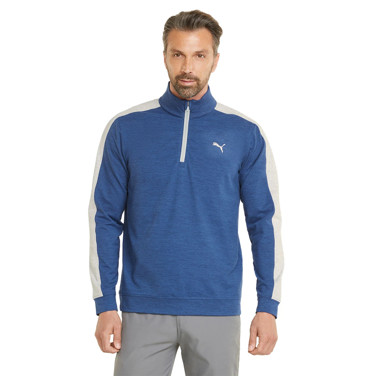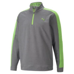 This sporty layer has been constructed with CLOUDSPUN, a circular knit fabric that provides an ultra-soft cotton feel, helping you to stay even more comfortable as you play golf. It has stretch properties to give you the freedom to perform playing golf and has a UV protection rating of 40+ UPF. This allows you to concentrate on your game and gives you every chance of performing to your best. This design features a PUMA cat logo on the chest, has a quarter zip opening.