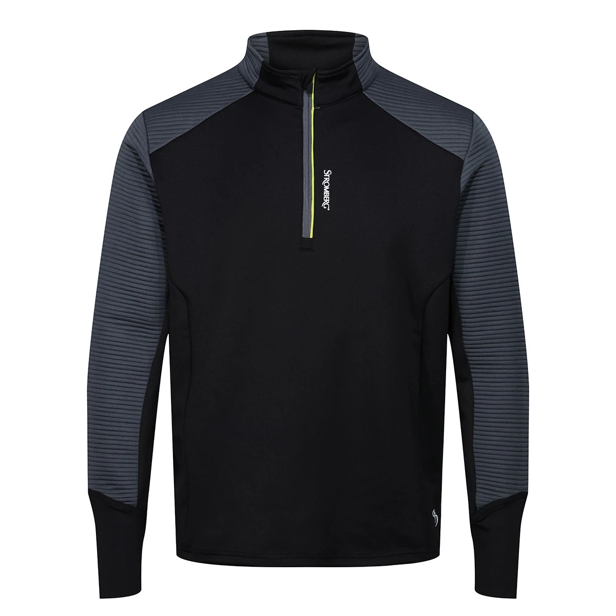 This mid layer is constructed with textured stretch spacer fabric, with Lycra cuffs for comfort and performance as you play golf. This will keep your body at your optimum body temperature without overheating, with a natural stretch for the freedom to move in any direction. The design features a front zip for adjustability and raised neck for shielding. Plus is highlighted with Stromberg silicone branding.