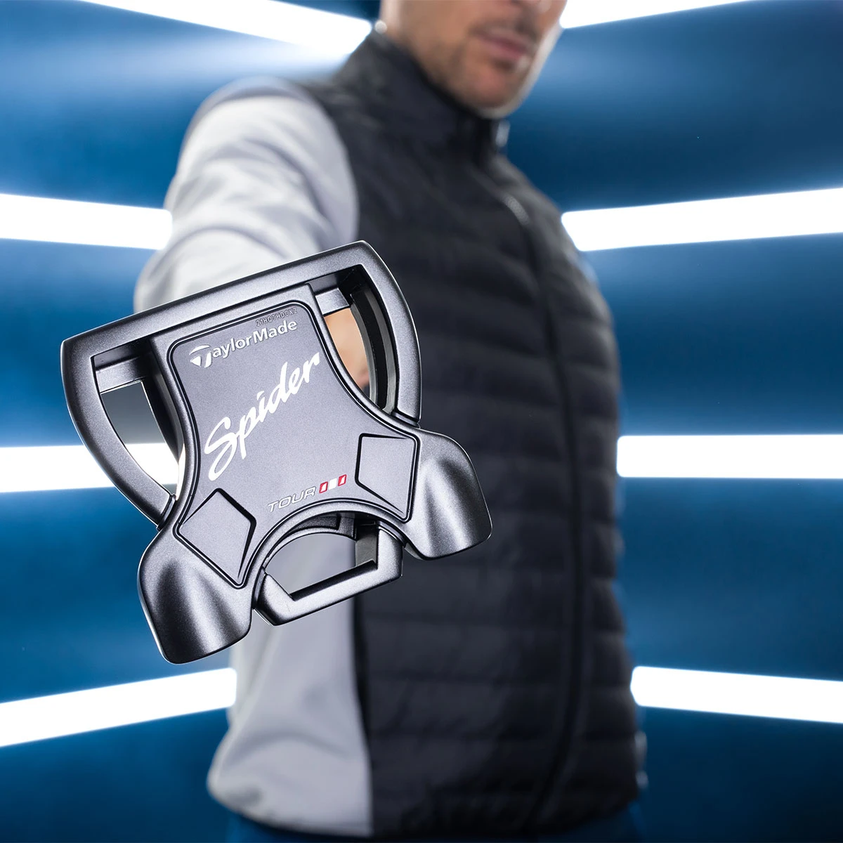 The TaylorMade Spider Tour Black offers more stability, more top spin, and a square shape look for a tour-proven putting performance. This variation features a short slant neck hosel which expands visibility of the face with toe hang, which is a feature not often found on a high-MOI mallet.