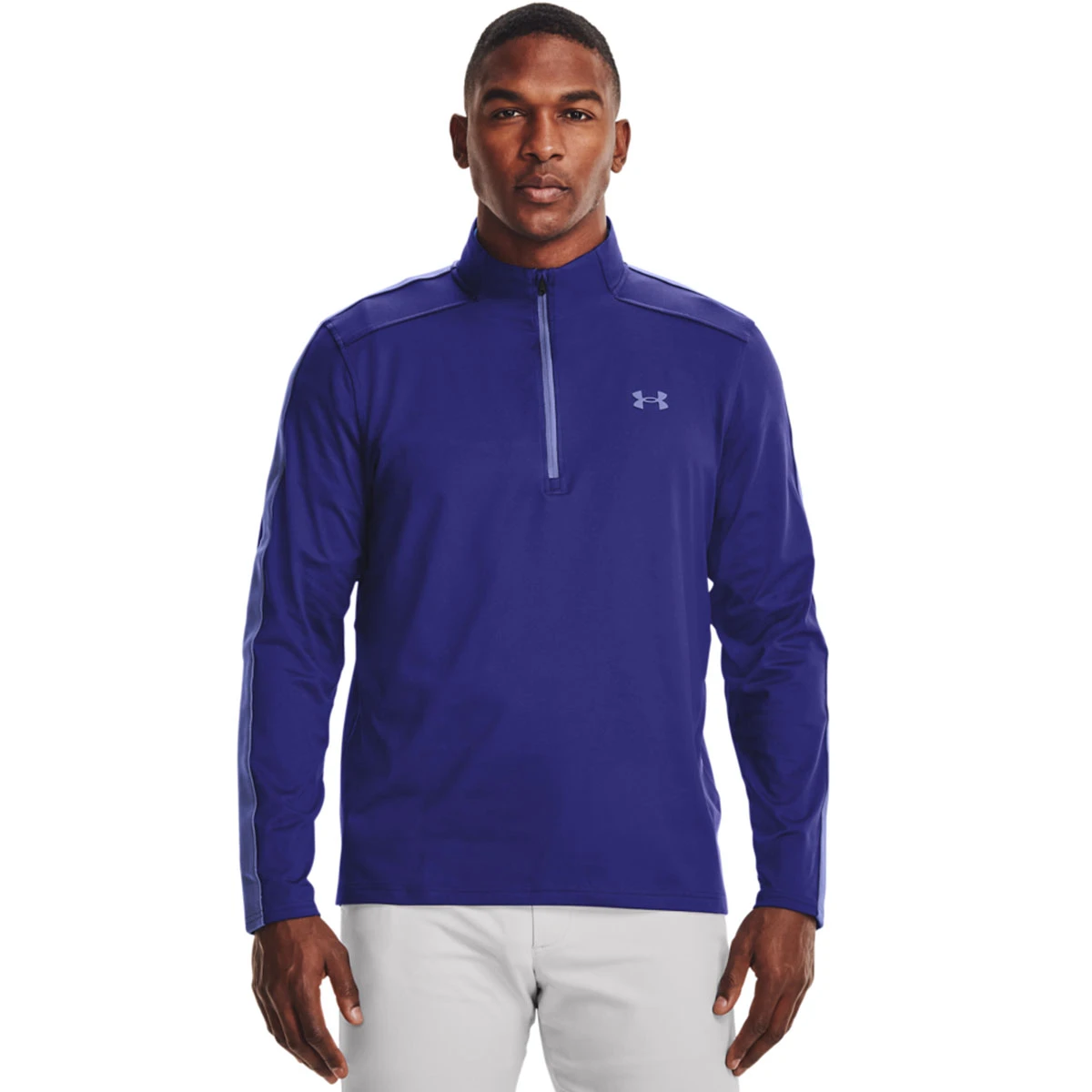 Play golf in warmth and comfort, with this confidence-inspiring garment from Under Armour. This premium layer top has been constructed with ColdGear® dual-layer fabric. Mid-weight with an ultra-warm brushed interior and a smooth rapid drying exterior to keep you comfortable as you play your round of golf. For added performance, the material wicks access sweat and Storm technology repels water away from the surface of the fabric without sacrificing breathability. Finer details include a 1/2 zip opening, plus is highlighted with Under Armour branding.