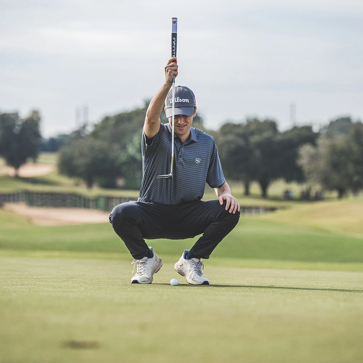 This Wilson Infinite putter makes for a consistent and more controllable putting stroke thanks to the counterbalanced technology incorporated in this club. The putter has a double milled face, which promotes a more consistent ball roll for better distance control, plus dark anti-glare finish provides ultra dark beautiful lines.